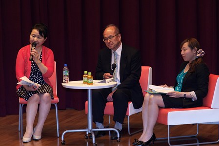 100名以上の人たちの前で話すのでかなり緊張しましたし、打合せなしのぶっつけ本番だったので思っていることをじょうずに話すことができませんでしたが、廣田さんのリードのおかげで何とか無事に終了しました。
